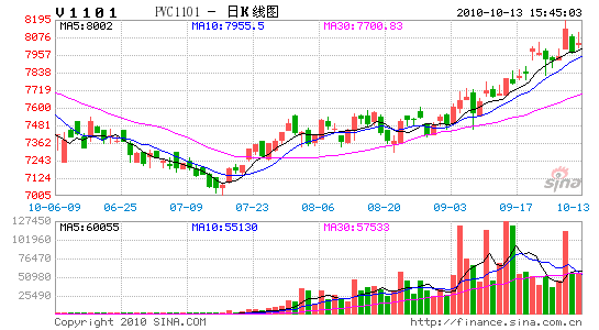 7月初,PVC期貨延續(xù)跌勢,月中跌破6800元關(guān)口,創(chuàng)出年內(nèi)新低,此后受股市上漲提振出現(xiàn)強(qiáng)勁反彈,結(jié)束了長達(dá)三個(gè)月的跌勢。8月上旬工信部下發(fā)落后產(chǎn)能淘汰名單,原料電石受到直接沖擊,另外西北、西南遭遇泥石流,加劇了運(yùn)輸困難,各地電石供應(yīng)趨緊,推動(dòng)PVC價(jià)格震蕩走高。隨著節(jié)能減排力度的加大,電石供應(yīng)緊張局面不斷加劇,PVC期貨一路震蕩上行,再度沖擊上方8000元整數(shù)關(guān)口。
