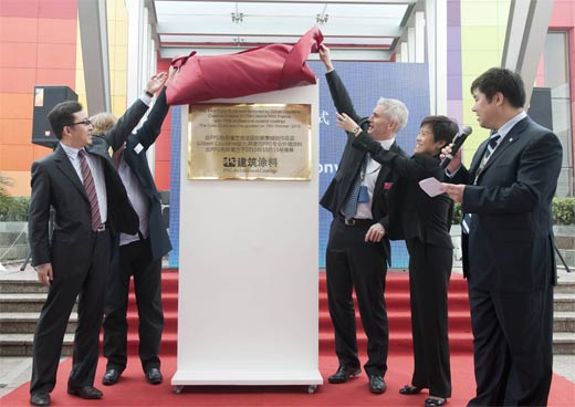 揭幕儀式(右一 為亞太區涂料副總裁 Mike Horton;右二 為亞太區汽車修補漆副總裁及中國建筑涂料副總裁袁潔儀)