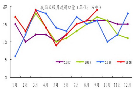 今年5月份以來,橡膠產業鏈從上游的原料加工廠,到中間的貿易商,再到下游的輪胎和制品廠,各個環節的橡膠庫存水平都很低,周轉庫存極低對于買家來說是很致命的,這造成了下游買家無法利用周轉庫存尋找恰當進貨時機,只能被動接受價格,不利于天膠價格穩定和下降。截止10月22日,上交所庫存為41681噸,仍處于歷史低位。2010年1至9月,中國進口天然橡膠(包括膠乳)134萬噸,較2009年同期上漲2.4%,而汽車銷量同比上漲35.97%。中國天然橡膠的對外依存度達到60%-70%,今年可能超過80%,由于天然橡膠的種植受到地理條件的限制,未來隨著中國汽車的增長,對外依存度還將繼續增加。