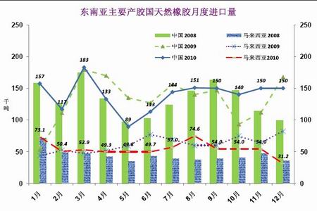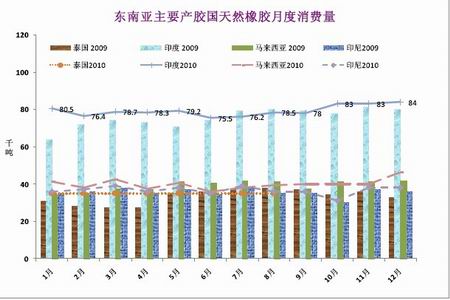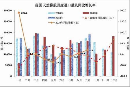 國內車市的強勁表現帶動了對于天然橡膠原料需求的增加,中國海關總署公布數據顯示,1至9月我國進口天然橡膠(包括膠乳)134萬噸,同比上漲2.4%。其中9月天然橡膠進口量為19萬噸,環比增19%。隨著進入11月停割期,國內天然橡膠的產量將大幅下降,年末進口量將進一步放大。印度方面,得益于其國內產量的下降和強勁的輪胎需求,未來幾個月天然橡膠的供需缺口可能將擴大,其 2010/11財年天然橡膠進口量可能將增加43%至10萬噸以上。總體上看,中印兩國在年末的需求量將保持一個較大幅度的增加。