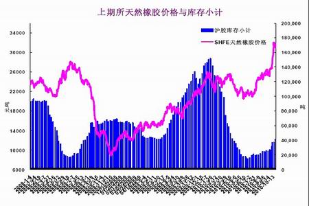 圖為上期所天然橡膠庫存走勢圖。(圖片來源:文華財經)