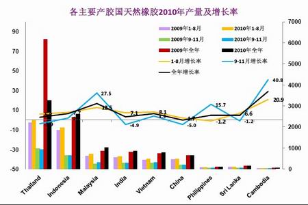 10月份泰國遭遇大面積降雨,國土面積的三分之一左右受災,對天然橡膠供應的影響目前還沒有量化的估計,但肯定會有影響。另外,印度方面,非季節性降雨致使其10月份產量大幅度削減,預計同比將減少10%左右。泰國、印尼在年底的產量仍有較大的不確定性,這取決于天氣的狀況。印尼方面的估計是,今年其天然橡膠產量可能將減少10-20萬噸至240-250萬噸,這樣印尼在第四季度的供應量將不如預期。