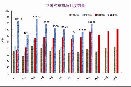 圖2-10 我國汽車月度銷量 單位:萬輛