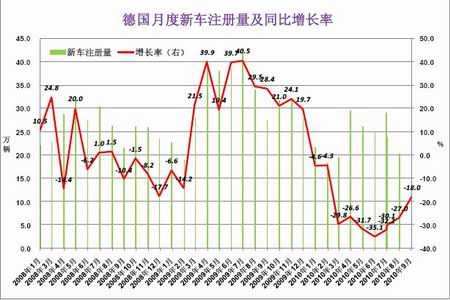 圖2-12 德國汽車月度新車注冊量 單位:萬輛 %