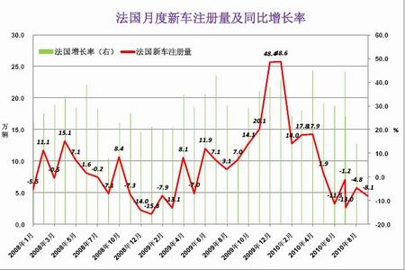 圖2-13 法國汽車月度新車注冊量 單位:萬輛 %