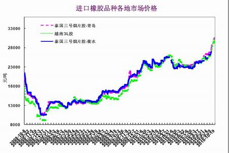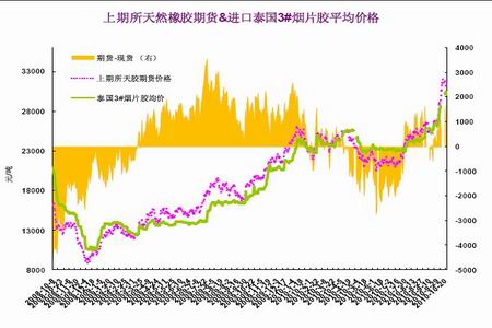 10月份國內外天然橡膠現貨價格持續飆升,不斷創下新的歷史記錄。目前,東南亞20#標價的價格已經沖上了4000美元/噸之上,26日報價4000-4060美元/噸,而泰國3號煙片膠的價格則在4050美元/噸之上,在不到一個月的時間里,價格已經上漲了500美元/噸。國內方面,標一價格已經達到了31000元/噸左右,較十一前每噸上漲4000元以上。滬膠10月份一直高于國內標價的價格,價差在300-1600元/噸之間,期限套利的機會存在但較少,比較難把握。