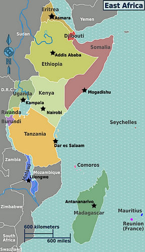 東非地區包括埃塞俄比亞、厄立特里亞、索馬里、吉布提、肯尼亞、坦桑尼亞、烏干達、盧旺達、布隆迪和塞舌爾。