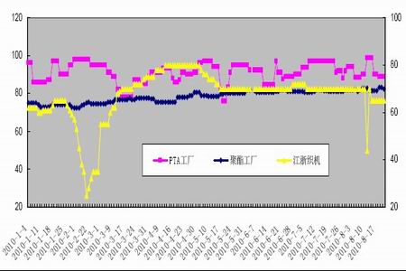 PTA 產(chǎn)業(yè)鏈生產(chǎn)負(fù)荷走勢(shì)示意圖(單位:%)