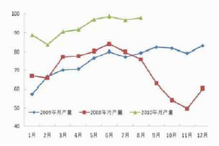1、8 月產(chǎn)量延續(xù)漲勢 受節(jié)能減排影響9 月產(chǎn)量或有回落