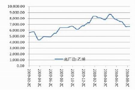 圖為國內(nèi)乙烯出廠價(jià)格走勢圖。(圖片來源:卓創(chuàng)資訊)