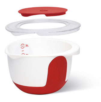 在制造“Mix&Bake”攪拌容器組合的同時(shí),EMSA公司也同樣因?yàn)門(mén)HERMOLASTK無(wú)臭無(wú)味及符合食品應(yīng)用的特性而獲益良多。除了與ABS良好接合外,這產(chǎn)品使用的TPE能確保容器底部以及把手的抓附力。特別的是,染成紅色的TPE元素“penetrate”,在容器的內(nèi)部提供業(yè)余廚師實(shí)用的指標(biāo):注入的容量指標(biāo)有公升數(shù)及杯數(shù)的指示,明顯清晰,“永不損耗”。除此之外,輕度染色的TPE,折疊式色拉脫水器使用的是綠色,攪拌容器組合使用的是紅色,讓EMSA公司的廚房用品儼然成了精致的設(shè)計(jì)藝術(shù)品。TPE材料在顏色方面靈活變換的特性讓EMSA在廣告及宣傳活動(dòng)有更多的可能性。