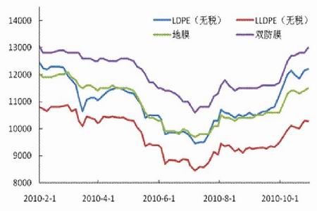 加工企業方面,十月初的農膜訂單接收十分理想,棚膜機組保持高位開機率,日產量達到年內峰值。受十一長假影響,多數廠家訂單接收量超過原料庫存量。長假過后,原料價格三天內大幅度拉升,部分廠家形成短暫虧損。十月中下旬,原料價格小幅回調,農膜對PE的需求量隨之增長,部分地膜經銷商謹慎入庫采購,棚膜訂單繼續保持旺盛局面,農膜制品行業對PE的需求量保持平穩。