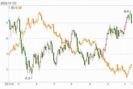 WTI原油與美元指數走勢圖
