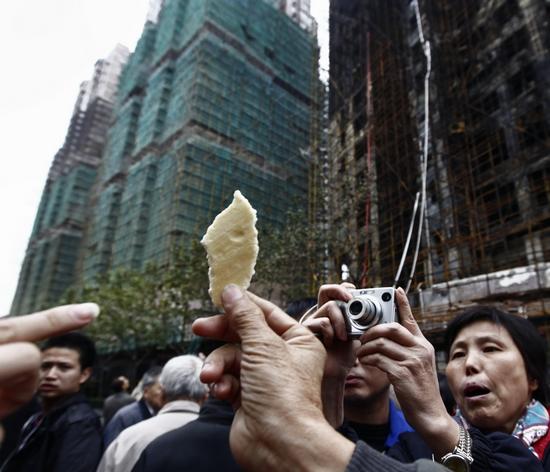 16日晚上10點,記者帶著現場搜尋到的外墻保溫材料向一位不愿透露姓名的滬上保溫新材料專家求助化驗與鑒定。