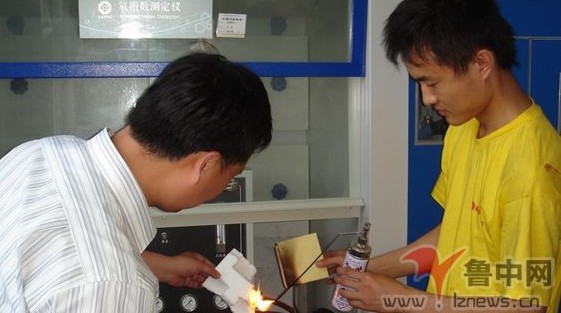 記者從淄博聯創聚氨酯有限公司了解到,按照阻燃等級,聚氨酯材料可以分為3大類,分別是可燃、阻燃、難燃。記者前期到該公司采訪時候,公司總經理馬建偉曾經演示過酒精燈點燃聚氨酯試驗,選取一塊建筑外墻使用的聚苯板和一塊聚氨酯材料,放在一起點火燃燒。記者親眼看到,聚苯板很快燒著而聚氨酯卻根本不燃燒。馬建偉表示,展示的就是阻燃等級最高的聚氨酯材料,阻燃等級次之的離火即滅。