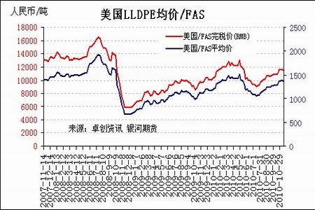 圖為美國LLDPE現貨市場均價走勢圖。(圖片來源:銀河期貨)