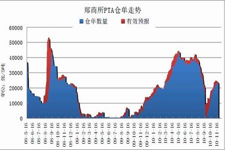 圖為鄭商所PTA倉單走勢圖。(圖片來源:銀河期貨)