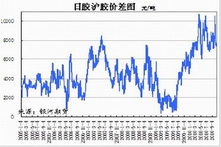 圖為日膠與滬膠價差走勢圖。(圖片來源:銀河期貨)