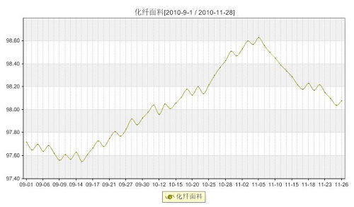 圖為商務部中國盛澤絲綢化纖指數化纖面料指數走勢
