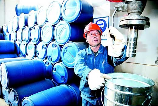 巴陵石化環氧樹脂事業部堅持走特種化、專用化的新品開發之路,該部研發的水性環氧樹脂產品環保無污染,質感像牛奶一樣,用手接觸無刺激,清水一沖就干凈了,使用非常方便。產品在涂料行業、混凝土改性及重防腐行業具有良好的應用前景。圖為工人在水性環氧樹脂成品出料口操作。