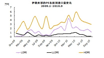 2009年11月起進口量出現(xiàn)明顯增加的主要原因為伊朗在2009年新擴建裝置產(chǎn)能。7月后的下降主要原因,筆者認為有二:一是裝置運行不穩(wěn),二是制裁因素。