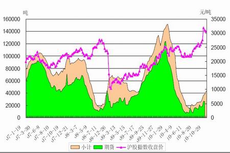 另外,受美國農業部(USDA)報告利多影響,美國玉米、大豆等農產品大幅上漲,商品交投重心逐步上移。NYMEX 原油價格在70 美元附近有較強的支撐,11 月合約的價格最近再次站上80 美元的上方,基金凈多頭率大幅上升至10 月26 日的9.0%,看漲意味較濃,而且后期隨著冬季來臨和農產品市場的走高,料將以震蕩上揚為主。