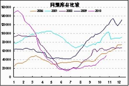 橡膠上海交易所庫存 報告日期:2010年11月05日 單位:噸