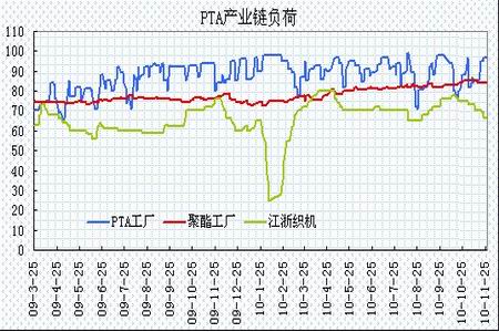 11月初,國內PTA生產裝置的計劃內和計劃外停車,其中,BP珠海一號150萬噸/年的PTA生產裝置停車10-15天,石獅佳龍石化的60萬噸/年PTA裝置也停車一周左右,遠東石化的PTA裝置也出現檢修,國內PTA裝置的開工率回落至82%,導致部分供應商合同減量的動作明顯。中下旬,隨著檢修裝置重啟,PTA裝置的綜合開工率大幅回升至97%。