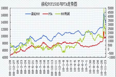 圖為滌綸POY150D與PTA走勢圖。(圖片來源:瑞達期貨)