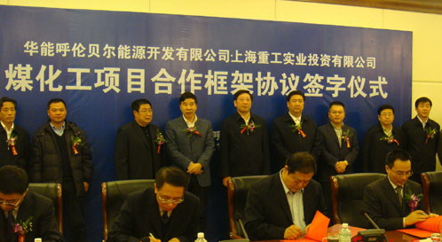 12月10日,華能呼倫貝爾能源開發(fā)有限公司、上海重工實(shí)業(yè)投資有限公司煤化工項(xiàng)目合作框架協(xié)議簽字儀式在呼倫貝爾舉行。