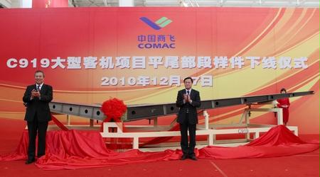 2010年12月17日,C919大型客機平尾部段樣件下線。平尾復材部段是2010年C919大型客機項目研制的重點任務之一,該部段的研制成功,進一步驗證了相關的工程設計及制造工藝方案,積累了大量設計、工藝經驗和寶貴數據,為增強復材制造加工能力,以及C919大型客機項目復材平尾的詳細設計和后續研制工作的順利開展打下堅實基礎,是C919大型客機項目復材部件研制中的又一重要進展。