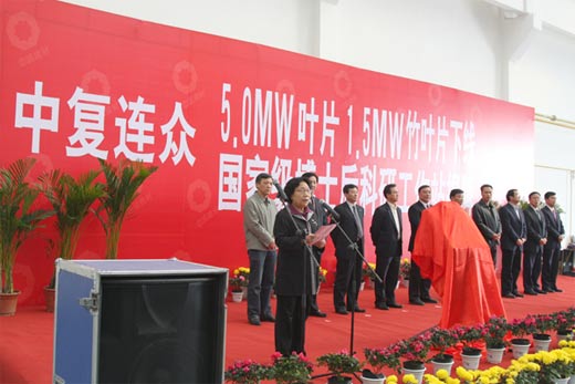 12月20日,中國建筑材料集團有限公司所屬連云港中復連眾復合材料集團有限公司研發的全球最大風機葉片5兆瓦復合材料風機葉片日前成功下線。該葉片長達62米,可與陸上、潮間帶和海上的5MW風機相配套,具有良好的氣動性能,運用了特殊的油漆系統和表面保護層,可適應鹽霧、風沙、低溫、強紫外線等運行環境。