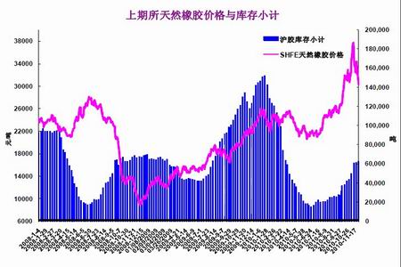 圖為上期所天然橡膠庫(kù)存走勢(shì)圖。(圖片來(lái)源:文華財(cái)經(jīng))