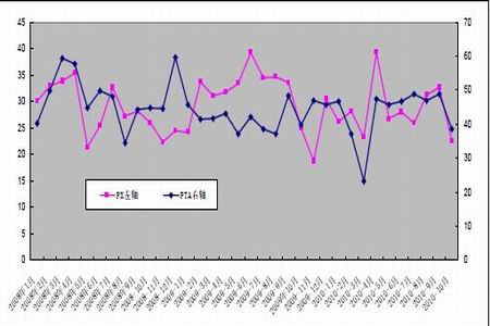 我國2010 年10 月份精對苯二甲酸(海關稅則號29173611)進口量為38.59 萬噸,較2010年9 月大幅減少10.32 萬噸,平均報關單價929 美元/噸;其它對苯二甲酸(海關稅則號29173619)進口量為9.36 萬噸,較9 月減少2.76 萬噸,平均報關單價902.5 美元/噸。今年以來,PTA 生產廠商的利潤一直較高,進而導致PTA 裝置一直保持較高的開工率,年內國產PTA 有望達到1900 萬噸,加上進口居高,完全能夠滿足國內需求,這將成為制約PTA 價格漲幅的主要因素。