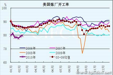 圖為美國煉廠開工率走勢圖。(圖片來源:北京中期)