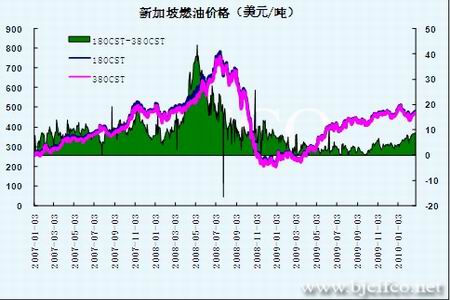 2010年2月份新加坡燃料油先抑后揚,受到原油價格大幅回落的拖累,新加坡180CST燃料油在2月8日下探至438.38美元/噸,為2009年10月15日以來的最低點,2010年2月下半月,隨著原油價格的連續多日上漲,新加坡燃油順勢反彈,180CST燃油價格重新回到460美元附近。但市場基本面逐漸轉疲,東西方套利窗口開啟,3月份套利船貨數量可能達到380-400萬噸半年內高點。之前對于供應擔憂情緒降溫。需求方面,盡管船用市場相對穩定,但來自目標市場需求則持續減弱,特別是來自中國的需求跌至年內最低。