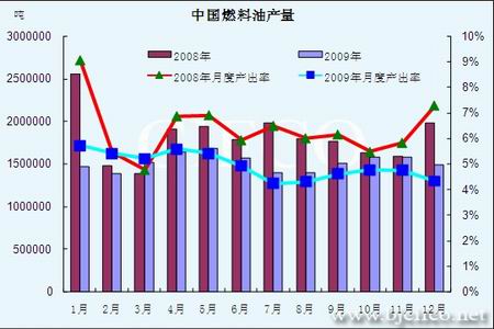 中國(guó)2009年12月份的燃料油產(chǎn)量為149萬(wàn)噸,環(huán)比減少5.63%,同比則大幅減少了26.2%,2009年全年燃料油的產(chǎn)量為1857萬(wàn)噸,比2008年減少了近五分之一,燃料油產(chǎn)量的不斷減少也使得國(guó)內(nèi)的供應(yīng)出現(xiàn)偏緊狀況。
