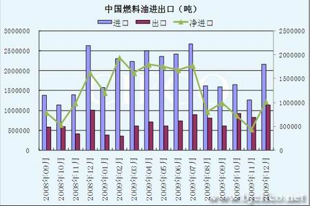 圖為中國(guó)燃料由進(jìn)出口走勢(shì)圖。(圖片來(lái)源:北京中期)