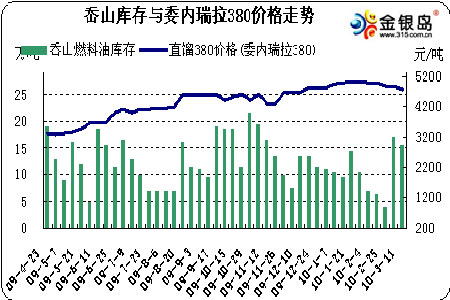 圖為岙山庫存與委內瑞拉380價格走勢圖。(圖片來源:金銀島)