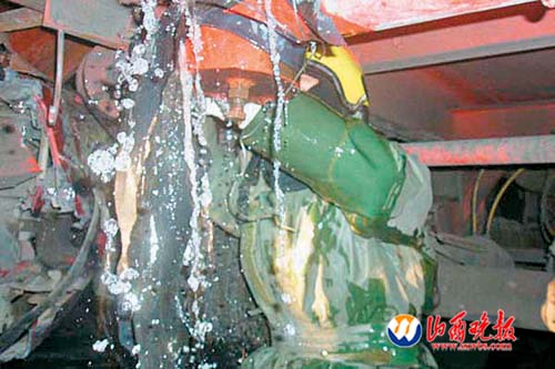 昨日午夜1時許,一輛運載33噸甲醇的槽車行駛至307國道舊關路段時,遭一輛煤焦油罐車碰撞,導致甲醇槽車罐體破損,11噸甲醇液體泄漏。經過消防人員15個小時的努力,到當日16時,險情終于被排除。