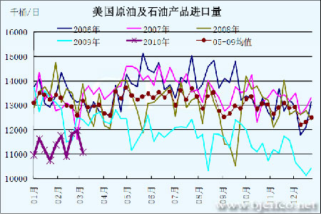 圖為美國原油及石油產品進口量走勢圖。(圖片來源:北京中期)