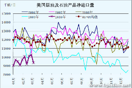 圖為美國原油及石油產品凈進口量走勢圖。(圖片來源:北京中期)