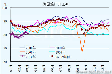 圖為美國煉廠開工率走勢圖。(圖片來源:北京中期)