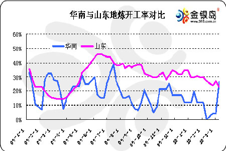 圖為華南與山東地煉開工率對比走勢圖。(圖片來源:金銀島)