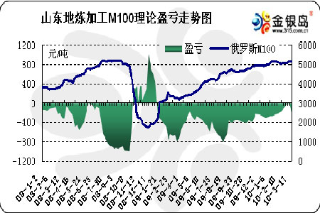 圖為山東地煉加工M100理論盈虧走勢圖。(圖片來源:金銀島)