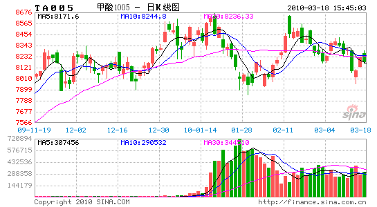 技術上,PTA今天面臨60日均線的壓力,估計有一兩天的調(diào)整,但隨著原油和基本面好轉,后市震蕩上漲的可能性較大。