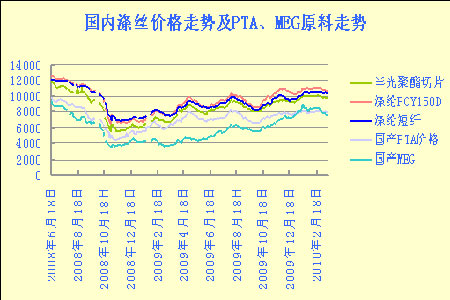 圖為國(guó)內(nèi)滌絲價(jià)格走勢(shì)與PTA、MEG原料圖。(圖片來源:集成期貨)