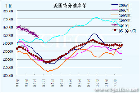 圖為美國餾分油庫存走勢圖。(圖片來源:北京中期)