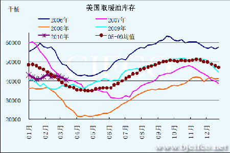 圖為美國取暖油庫存走勢圖。(圖片來源:北京中期)
