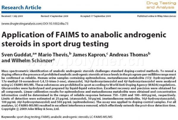FAIMS在運動藥物合成雄性激素類固醇檢測中的應用